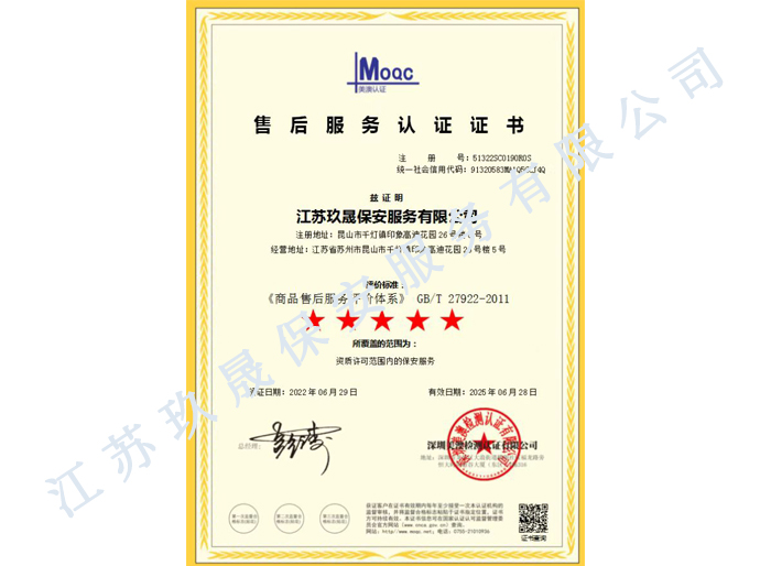 - 我們19年開始和昆山玖晟保安公司合作,合作一直很愉快,尤其這次疫情期間,玖晟保安有條不紊的為我們守住園區(qū)的安全。好樣的。 ---帝浦拓** 2020-05-11